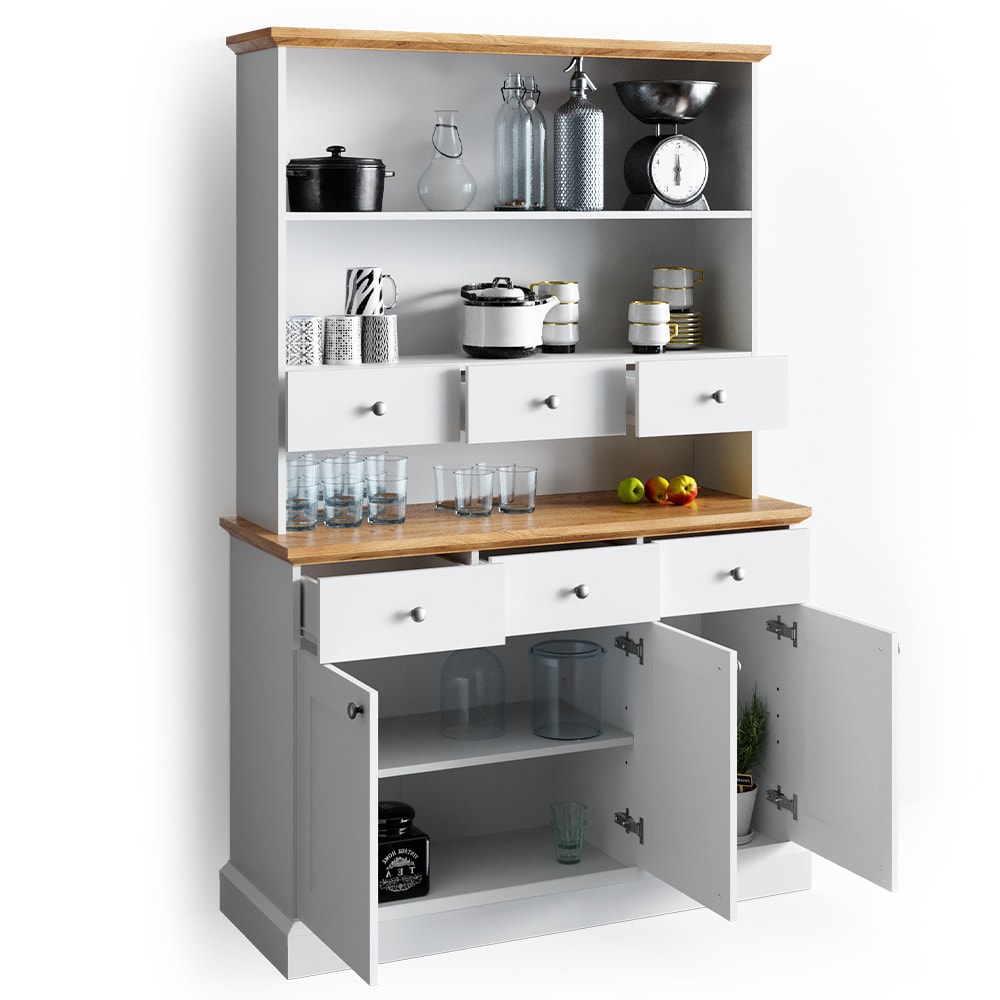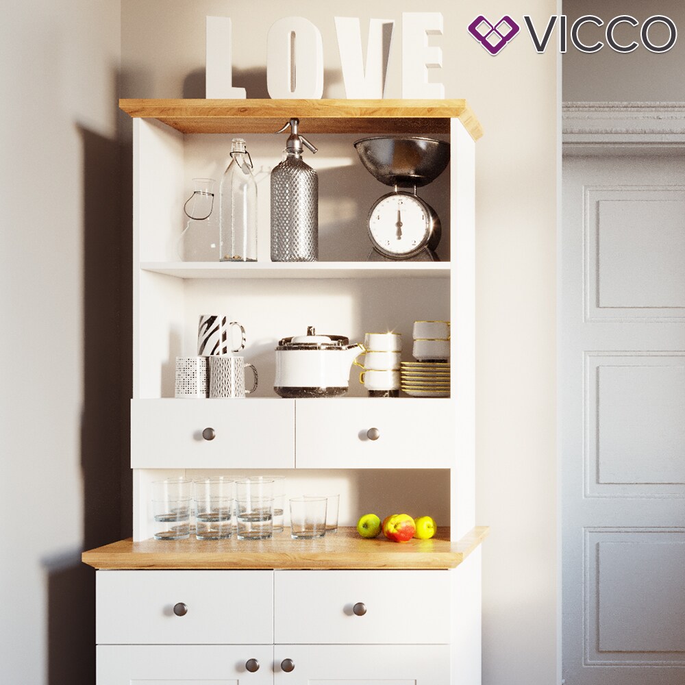 Vicco Kuchenschrank Cambridge Vitrine Buffet Kuchenregal Landhaus Eiche Weiss Eiche Farbe Weiss Eiche Kuchenschrank Kuchenregal Weisse Eiche