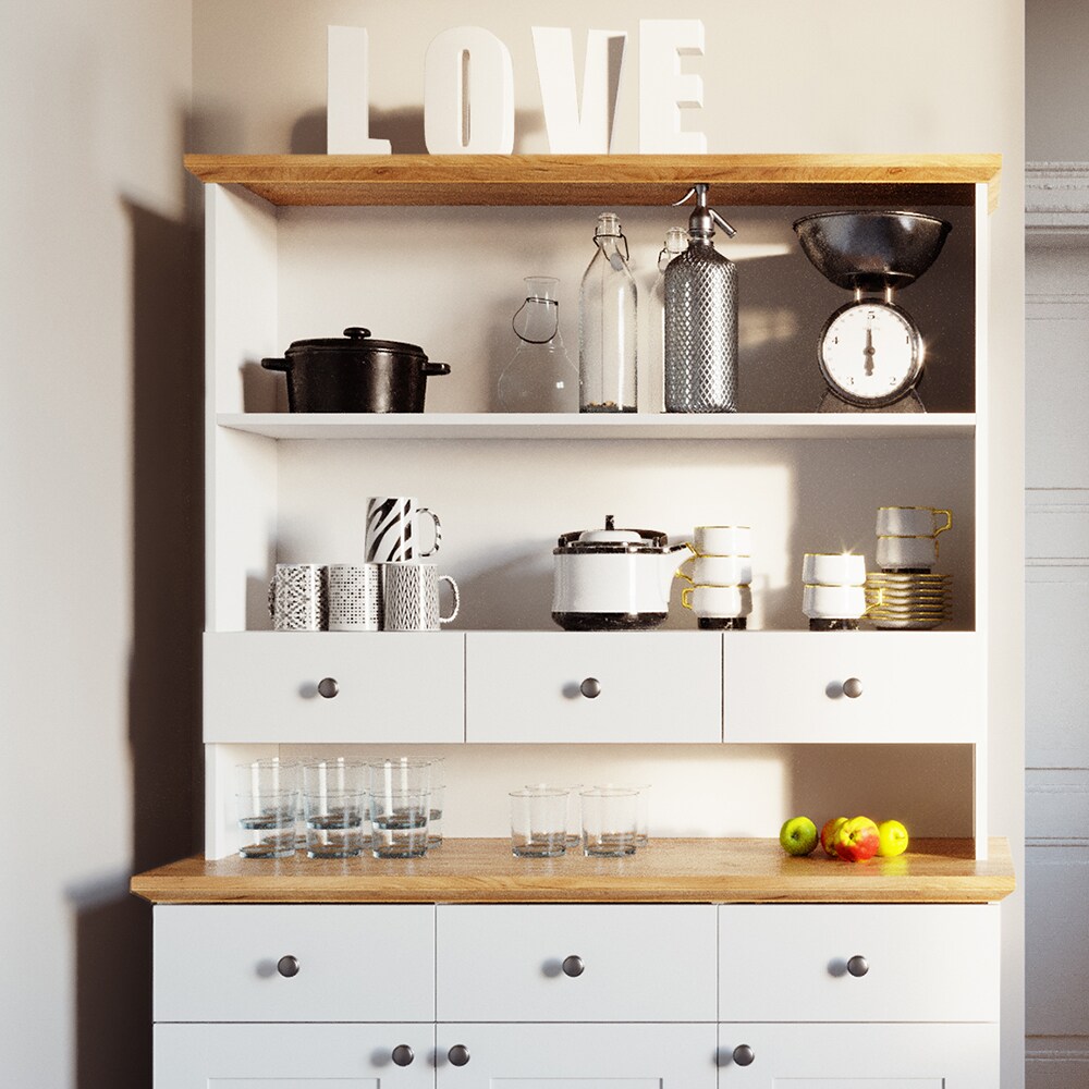 Mobelando Buffet Schrank Buffetschrank Sideboard Kommode Vitrinenschrank Weiss Landsted I Amazon De Kuche Haushalt Wohnen