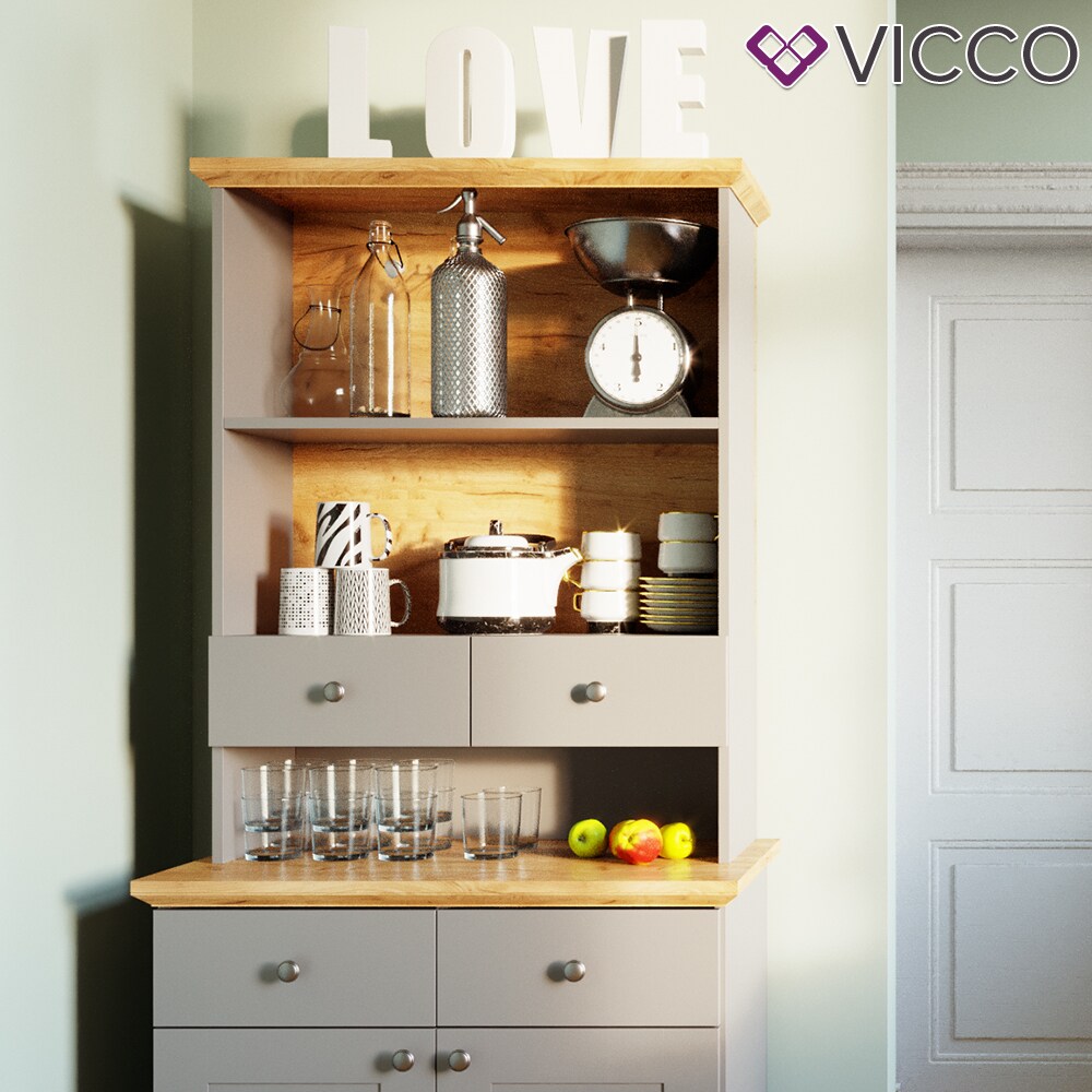 Esszimmer Vicco Kuchenregal Cambridge 80 Cm Vitrine Buffet Kuchenregal Landhaus Eiche Grau Eiche Kuche Haushalt Wohnen Agb Lv